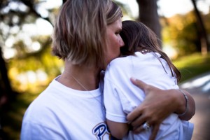 Mary Kilar holds on tightly to her 5-year-old as they walk away from visiting Trey's grave. Photo by Lukas Keapproth